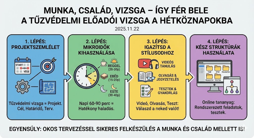 Ha tűzvédelmi előadói vizsgára készülsz, akkor valószínüleg dolgozol, ott a család, határidők, felelősség, közben pedig valahogy be kellene zsúfolni: