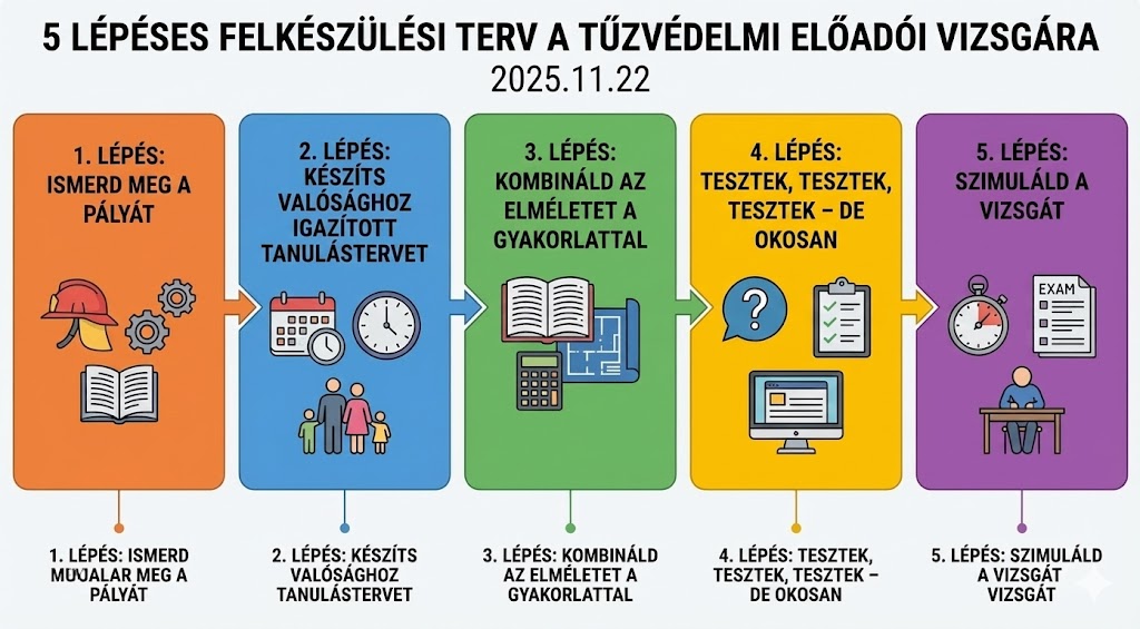 A tűzvédelmi előadói vizsga sokaknak nemcsak egy vizsga, hanem egy nagy mérföldkő: munka, család, határidők, közben pedig ott vannak a jogszabályok, TvMI-k, OTSZ, szakszámítások és a tűzvédelmi tesztkérdések. Könnyű azt érezni, hogy ezt lehetetlen normális élet mellett felvállalni.