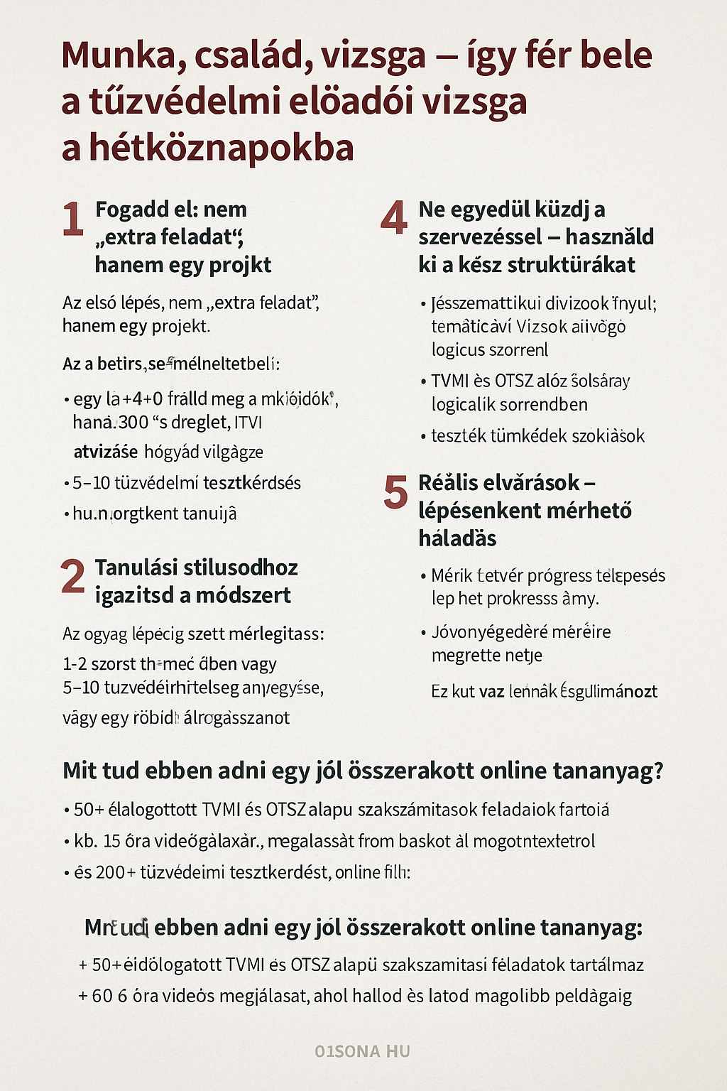 Ha tűzvédelmi előadói vizsgára készülsz, valószínűleg nem egyetemista vagy, aki ráér egész nap tanulni. Dolgozol, ott a család, határidők, felelősség, közben pedig valahogy be kéne zsúfolni: